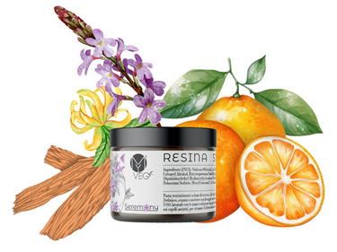 Resina strutturante è una pasta a base di incenso, oli e burri vegetali. Definisce, separa e sostiene con un fissaggio medio-forte, questo prodotto viene consigliato anche come rinforzante delle sopracciglia, come impacco nutriente per il corpo e negli uomini viene usata come azione anticrespo per la barba.